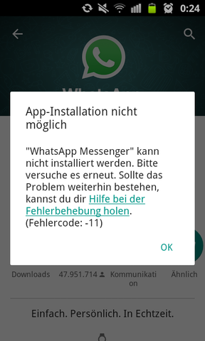 What S App Aktualisierung Installation Funktioniert Nicht Fehlercode 11 Handy Whatsapp Fehler