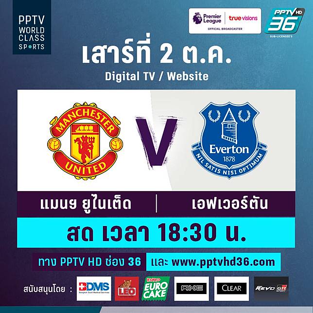 ล งก ด บอลสดพร เม ยร ล ก แมนย พบ เอฟเวอร ต น 2 ต ค 64 Pptv Hd 36 Line Today